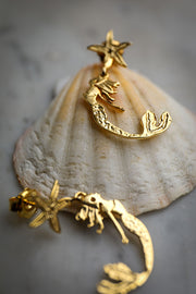 Orecchini sirena con stella marina al lobo, realizzati a mano in argento placcato oro 23Ct bianco, giallo o rosa.