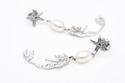 Orecchini sirene piccole in argento placcato oro bianco, giallo o rosa con perlina.