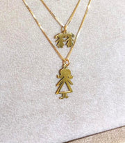 Collana in oro giallo 18 kt raffigurante due bambine che si tengono per mano.