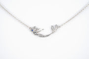 Il nostro girocollo sirena è in argento placcato oro 23kt e impreziosito da uno zaffiro naturale nell’occhio di 0,01Ct.